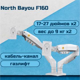 Настольный кронштейн NB F160 с газлифтом для двух мониторов на струбцине к столешнице, наклонно-поворотный. Подходит для экранов с диагональю 17-27 дюймов. North Bayou F160 идеален для оптимальной организации пространства для работы, создания импровизированной игровой станции.