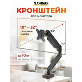 Найти - Кронштейн для монитора 10-32 настольный Classmark нагрузка до 10 кг, угол наклона 90 градусов и поворота 180, VESA 75х75 и 100х100