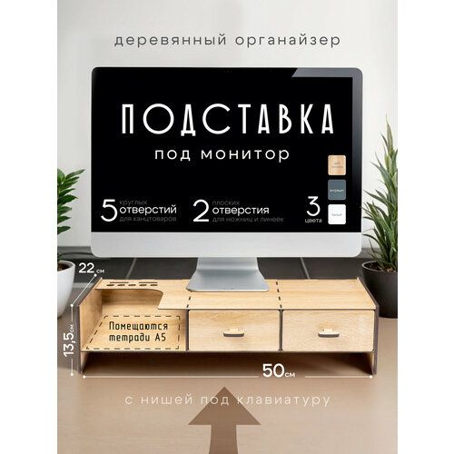 Наша подставка под монитор компьютера не только обеспечивает оптимальную высоту экрана для комфортной работы, но и предлагает удобное хранение благодаря встроенным ящикам.