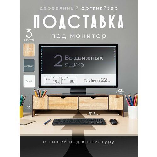 Наша подставка под монитор компьютера не только обеспечивает оптимальную высоту экрана для комфортной работы, но и предлагает удобное хранение благодаря встроенным ящикам.