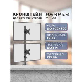 Найти - Кронштейн двойной настольный Vesa до 100х100 / диагональ 10-32, наклонно-поворотный, Harper MII-28