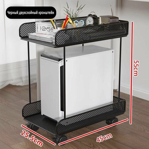 Найти - Подставка для системного блока H138, чёрная, 50кг, с тормозами, многофункциональная, двухслойная