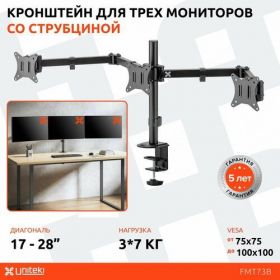 Найти - Крепление для трех мониторов горизонтально на стол со струбциной диагональ от 17 до 28 дюймов UNITEKI FMT73B черный, кронштейн настольный, наклонно поворотный, телескопический