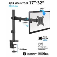 Установка кронштейна осуществляется на стол, что позволяет экономить пространство на рабочем месте. Максимальная диагональ монитора, которую можно установить на кронштейн, составляет 32 дюйма.