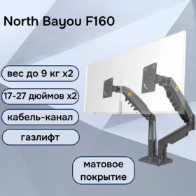 Настольный кронштейн для двух мониторов NB F160 с газлифтом на струбцине, наклонно-поворотный. Держатель монитора подходит для экранов с диагональю 17-27 дюймов. Кронштейн на стол North Bayou F160 идеален для организации пространства для работы, создания игровой станции.
