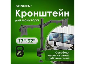 Кронштейн для двух мониторов настольный VESA 75х75, 100х100, 17"-32", до 16 кг, SONNEN STATIC, 455943 102672853676