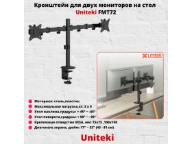 Кронштейн для двух мониторов наклонно-поворотный с диагональю от 17" до 32" UniTeki FMT72, черный 101851998683