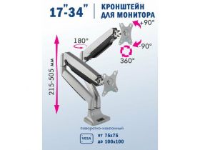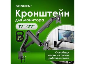 Кронштейн для двух мониторов настольный VESA 75х75, 100х100, 17"-27", до 14 кг, SONNEN MOTION, 455945 55271709