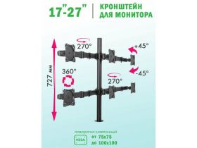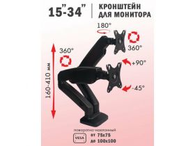 Кронштейн для монитора Cactus CS-VM-LH08-BK, настольный, поворот и наклон, черный 101813592222