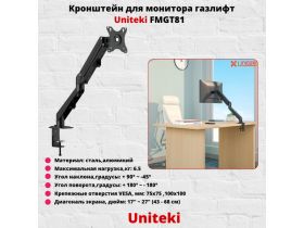 Кронштейн для монитора наклонно-поворотный газлифт с диагональю от 17" до 27" UniTeki FMGT81, черный 101818971241