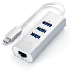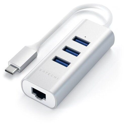 Найти - USB-концентратор Satechi Type-C 2-in-1 Aluminum Hub and Ethernet Port (ST-TC2N1USB31AM), разъемов: 3, 10 см, Silver