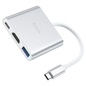 Найти - USB-концентратор hoco. HB14 Easy use USB-C на USB3.0 + HDMI + PD, разъемов: 3, серебристый