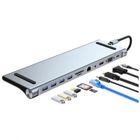 Док-станция PALMEXX 10в1 USB-C to HDMI+VGA+4*USB3.0+USBC+CR+LAN+AUX (USB-концентратор) способен намного расширить возможности ноутбука или мобильного устройства с портом USB Type-C. Выполнен в надежном металлическом корпусе, не требует дополнительного питания и охлаждения. Устройство обладает следующими разъемами: