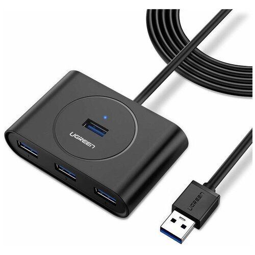 Найти - Хаб UGREEN CR113 (20290) USB 3.0 to 4 USB 3.0 + порт для питания Micro USB, кабель 50cm, Black