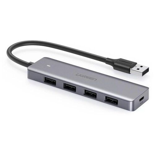 Хаб USB-A 4 в 1 UGREEN CM219 / 4xUSB-A 3.0 / Скорость 5Gbps / Доп. питание MicroUSB / цвет серый космос (50985)