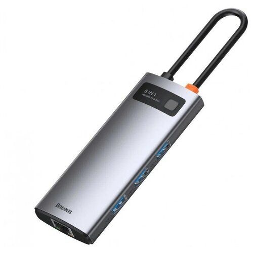 USB-концентратор Baseus Metal Gleam Series 6-in-1 (CAHUB-CW0G), USB Type-C - 3×USB3.0, HDMI, USB Type-C, RJ45, Space Grey