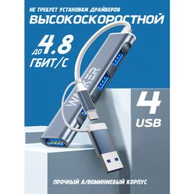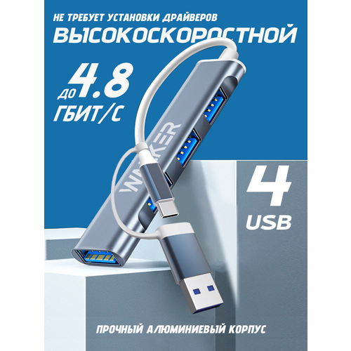 Разветвитель на 4 USB порта WALKER HUB11 - это универсальный USB-хаб, который позволит вам быстро и легко подключить несколько устройств к компьютеру или ноутбуку. Он имеет 3 порта USB-2.0 и разъем USB 3.0, что позволяет передавать данные на высокой скорости. Разъем Type-C также позволяет подключать устройства с поддержкой USB-C.