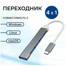 USB-C HUB концентратор USB 3.0 Type-C. Один порт оснащен USB версии 3.0, что увеличивает скорость передачи данных до 5 Гбит/с Преимущества: совместим с техникой Apple, высокая скорость передачи данных, не требуется установка драйверов Подходит для компьютера и мобильного телефона. Многопортовое расширение USB2.0/USB3.0, например: подключение мыши, клавиатуры, подключение периферийных устройств и и т. д. Характеристики: 1. Подключи и работай, простой в установке. 2. Может одновременно поддерживать четыре высокоскоростных USB-устройства. 3. USB 3.0, в 10 раз быстрее, чем USB 2.0, скорость передачи до 5 Гбит/с. Совместим со спецификациями USB 2.0 и 1.1. 4. Поддержка функции защиты от перегрузки, может эффективно защитить подключенное оборудование и сам концентратор при внезапном включении. 6. Стабильная производительность, долговечность и надежность. Спецификация: Материал: алюминиевый корпус Тип: USB, Type-C Интерфейс: 1 * USB 3.0 и 3 * USB 2.0 Система поддержки: для Windows 10/8/7, Vista, XP, Mac10.4.6 Длина кабеля USB: 15 см Размер: 80х16х7 мм Цвет: серебристый