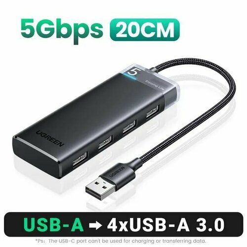 Найти - Хаб UGREEN CM653 (15548) 4-Port USB-A 3.2 GEN 1 with USB-C power port Hub Цвет: черный