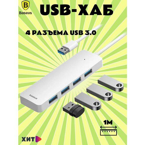 Найти - USB-хаб концентратор Baseus UltraJoy Series USB на 4хUSB 3.0, 100см, (B0005280B211-01) белый