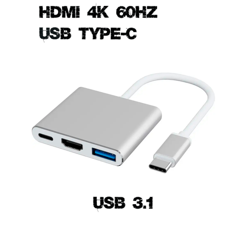 Многофункциональный адаптер удобный и полезный аксессуар. Подходит к ноутбуку (Совместим с MacBook) , iPad и другим устройствам с разъемом Type-C (USB-C) поколения 3.1(поддерживает функцию DP Alternative mode type-c). Хаб оснащен тремя разъемами: дублирующим USB-C, USB 3.0 и HDMI c поддержкой 4K. Дублирующий USB-C заменяет, используемый для подключения переходника разъем. Наш универсальный USB Hub выполнен из высокачественного алюминиевого сплава.