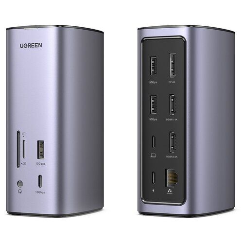 USB-концентратор 13 в 1 (HUB) Ugreen: USB A (5Gb)x2 + 3.1, DP 4K, HDMI (4K)x2 + (8K), Type-C (PD 100В) + (3.1), 3.5 mm Audio, RJ45, SD/TF (90325)