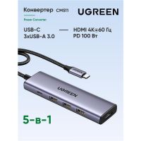 Мульти Хаб UGREEN CM475 (60600) USB-C - это устройство, которое позволяет подключать к USB-C порту компьютера или ноутбука дополнительные устройства через порты USB 3.0 и получать доступ к сети Интернет через Ethernet-порт.