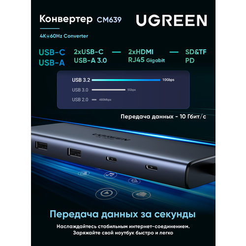 Найти - Конвертер UGREEN CM639, 10 в 1, поддержка разрешения 4К, серый