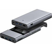 Вход: USB Тип C. Выход: 1х USB 3.2 А, 1х USB 3.0 А, 2х USB-C 3.2, 2х HDMI, 1х RJ45 Gigabit, 1х слот TF, 1х слот SD, PD. Стандарт USB 3.0, скорость до 5 Гбит/с, совместимость с USB 2.0/1.1. MST для Windows. Каждый порт HDMI поддерживает максимальное разрешение 4K*2K при 60 Гц. При одновременном использовании двух портов HDMI продукт поддерживает два порта HDMI. Выход 4K при 30 Гц (Windows). Выход 4K при 60 Гц (macOS). Стандарт USB 3.2, 10 Гбит/с теоретическая скорость передачи. Сетевой порт: 10/100/1000 Мбит/с. Поддерживает чтение и запись TF/SD 3.0 двух портов одновременно. Порт питания: порт USB-C, поддерживает зарядку PD мощностью 100 Вт. Алюминиевый корпус.
