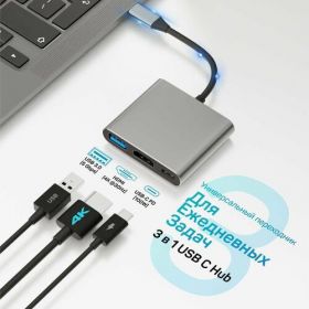 USB Hub 3 в 1Представляем вашему вниманию USB Hub 3 в 1 — идеальное решение для расширения возможностей подключения ваших устройств Данный USB хаб 3.0 отличается высокой скоростью передачи данных — до 5 Гбит/с. Это позволяет вам существенно ускорить работу с большими файлами и быстро передавать данные между устройствами. Благодаря поддержке Type C HDMI и HDMI Type C, вы сможете подключать свои гаджеты к телевизорам и проектам для отображения видео в высоком качестве. Кроме того, в вашем распоряжении переходник USB на Type C, который откроет новые горизонты возможностей для подключения устройств. А также переходник Type C на USB Micro, который обеспечит дополнительную универсальность и совместимость с разнообразной техникой. Компактный и легкий, наш хаб USB идеально подходит для дома, офиса и путешествий. Удобный тройник с USB позволяет одновременно подключать несколько устройств, что значительно упрощает вашу работу. Не упустите возможность улучшить свой набор аксессуаров с помощью USB Hub 3 в 1 — этот хаб станет надежным помощником в вашем цифровом мире, обеспечивая стильный и функциональный интерфейс для всех ваших потребностей. Заказывайте уже сегодня и наслаждайтесь новым уровнем удобства