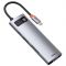 Найти - Разветвитель USB HUB 8 в 1, 4 USB, typec, AUX, Micro SD, SD, usb концентратор для macbook, hub с внешним питанием, серый