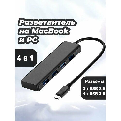 Переходник для Macbook usb на usb Hub разветвитель 4 в 1 с разъемом подключения type-c. Обратите внимание на этот товар, когда будете выбирать подарок на 23 февраля и подарок на 8 марта. Адаптер type-c - универсальный аксессуар для вашего телефона, компьютера, ноутбука или планшета. Type-c Hub обеспечивает соединение устройств оснащенных разъемами usb. Переходник легко крепится к ПК, Macbook (Air, Pro), Xiaomi, Samsung, планшеты iPad, Huawei, Honor. Удлинитель добавляет несколько разных портов: 3 x USB 2.0, 1 x USB 3.0. Порт USB 3.0 обеспечивает скорость до 5 Гбит/с, что делает передачу данных быстрой и легкой. При помощи USB-концентратора Вы можете одновременно подключить компьютерную мышь, клавиатуру, модем, флешку. А также внешний и жесткий диск, смартфон, принтер и другие устройства со стандартным USB-разъемом. Легкий и компактный, портативный картридер станет незаменимым помощником в учебе, на работе, дома. Идеальный подарок мужчине и женщине на Новый год и День рождения. С уважением, ваш Techno Shop.