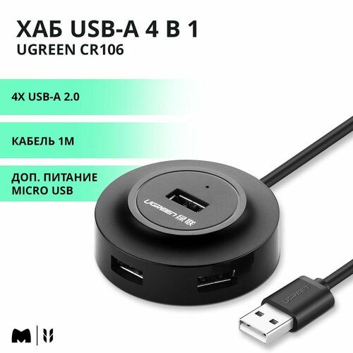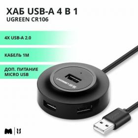 USB-хаб (USB-концентратор/разветвитель) UGREEN CR106 — это полезное практичное решение для расширения функционала вашего десктопа или ноутбука. Позволяет подключить к компьютеру несколько устройств одновременно (клавиатура, мышь, внешний жёсткий диск и другие), тем самым повысить возможности ПК или лэптопа, его эффективность как в работе, так и в цифровых развлечениях. Девайс оборудован следующими портами и разъёмами: 4 x USB 2.0 Type-A, порт подключения — USB 3.2 Gen 1 Type-В. UGREEN CR106 выглядит симпатично (цвет — черный), это стильное дополнение к компьютеру на любом рабочем или домашнем столе. Среди положительных черт UGREEN CR106, безусловно, нельзя не отметить и привлекательную цену этого аксессуара. Партнам — 20277_.