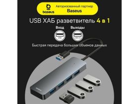USB-хаб Baseus UltraJoy Series 4-Port HUB Lite 15см (USB на USB 3.0*4), B0005280B811-00 серый 103719245209