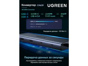 Конвертер UGREEN CM639, 10 в 1, поддержка разрешения 4К, серый 1076669536