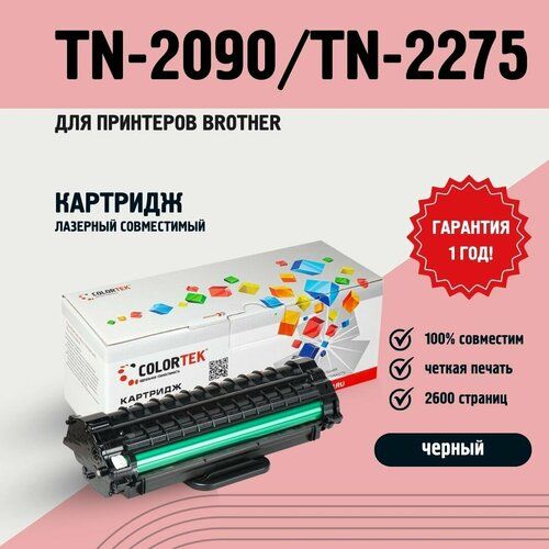 Совместимый лазерный картридж Colortek TN-2090/TN-2275 для принтеров Brother HL 2132R, Brother DCP-7057R, Brother HL-2240R, Brother 2240DR, Brother 2250DNR, Brother DCP-7060DR, Brother 7065DNR, Brother MFC-7360NR, Brother 7860DWR, Brother FAX-2940R.