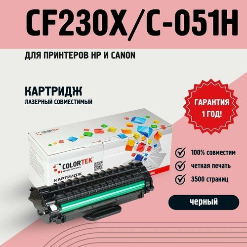 Совместимый лазерный картридж Colortek CF230X/C-051H для принтеров HP LaserJet Pro M203, HP LaserJet Pro M206, HP LaserJet Pro M227, HP LaserJet Pro M230, Canon LBP 160, Canon LBP 162, Canon MF 260, Canon MF 264, Canon MF 267, Canon MF 269.