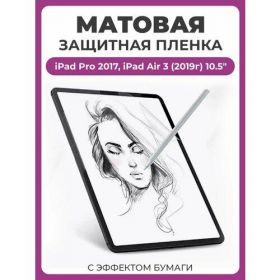 Защитная пленка с эффектом бумаги для Apple iPad Pro 2017 / iPad Air 3 2019 (10.5") — это инновационная технология защиты вашего айпад. Защитная пленка имеет специальный рельеф, повторяющий поверхность бумаги. Поэтому, когда вы пишите или рисуете, у вас возникает ощущение, что делаете вы это в блокноте, а не на идеально гладком экране. Плёнка имеет высокую степень устойчивости к царапинам, обеспечивает хорошую чувствительность и не влияет на работу сенсора экрана. Особенностью данной модели является антибликовое покрытие. Не снижает четкость изображения и не меняет цветопередачу. Имеет полную проклейку и полностью покрывает дисплей. Поверхность пленки также устойчива к отпечаткам пальцев или иным жирным следам. Благодаря пленке ваш iPad защищен вдвое лучше и выглядит как новенький даже после длительного использования.
