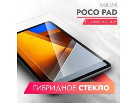 Защитное стекло для Xiaomi Poco Pad 12.1", (гибридное: пленка+стекловолокно), прозрачное силиконовая клеевая основа тонкое Hybrid Glass, Brozo 103585800538