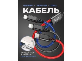 Кабель для зарядки AlisaFox, 3 в 1 USB Type-C + Lightning + microUSB, цветной, длина 1.2м 103149126796
