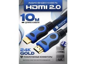 Кабель аудио видео HDMI М-М 10 м 1080 FullHD 4K UltraHD провод HDMI / Кабель hdmi 2.0 цифровой / черно-синий 102267301451