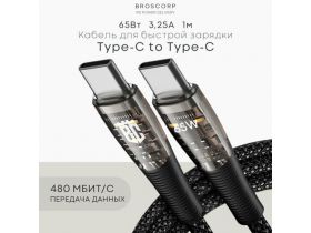 Кабель BROSCORP Type-C to Type-C 1 метр в нейлоновой оплетке, прозрачный штекер, для Apple и Android, 1 метр 102411822687