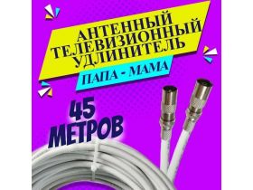 Антенный удлинитель коаксиальный 45 метров. Шнур для телевизора. ТВ штекер - ТВ розетка (ТВ гнездо). "Папа" - "мама". Антенный телевизионный кабель RG-6U 103796944219