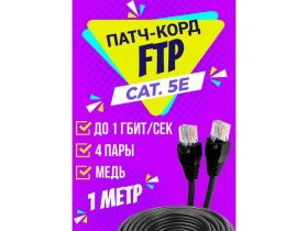 Патч корд уличный FTP 1 метр, категории 5е, RJ45 интернет кабель LAN / сетевой / Ethernet / FTP патч-корд черный 103796892012