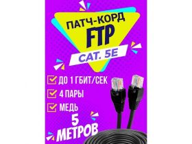 Патч корд уличный FTP 5 метров, категории 5е, RJ45 интернет кабель LAN / сетевой / Ethernet / FTP патч-корд черный 103796889945