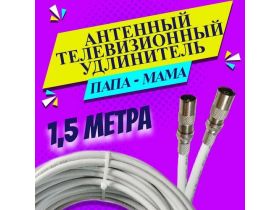 Антенный удлинитель коаксиальный 1,5 метра. Шнур для телевизора. ТВ штекер - ТВ розетка (ТВ гнездо) "Папа" - "мама". Антенный телевизионный кабель RG-6U 103796893210