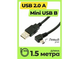Кабель USB - mini USB (1.5 метра, 150 см) угловой для зарядки черный, левый угол, питание и передача данных, папа папа 103738227094
