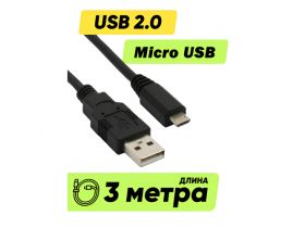 Кабель провод шнур USB Micro USB (3 м метра, 300 см длинный) для зарядки телефона / планшета / камеры / черный 102027092421