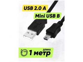 Кабель провод шнур USB - mini USB (1 м) юсб - мини юсб для зарядки джойстикa PS3, навигатора, черный, папа - папа 101598267849