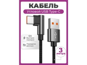 Угловой кабель USB Type C быстрая зарядка 6A 66W 3 метра, нейлоновый провод USB Type-C шнур 3 м 4384862562